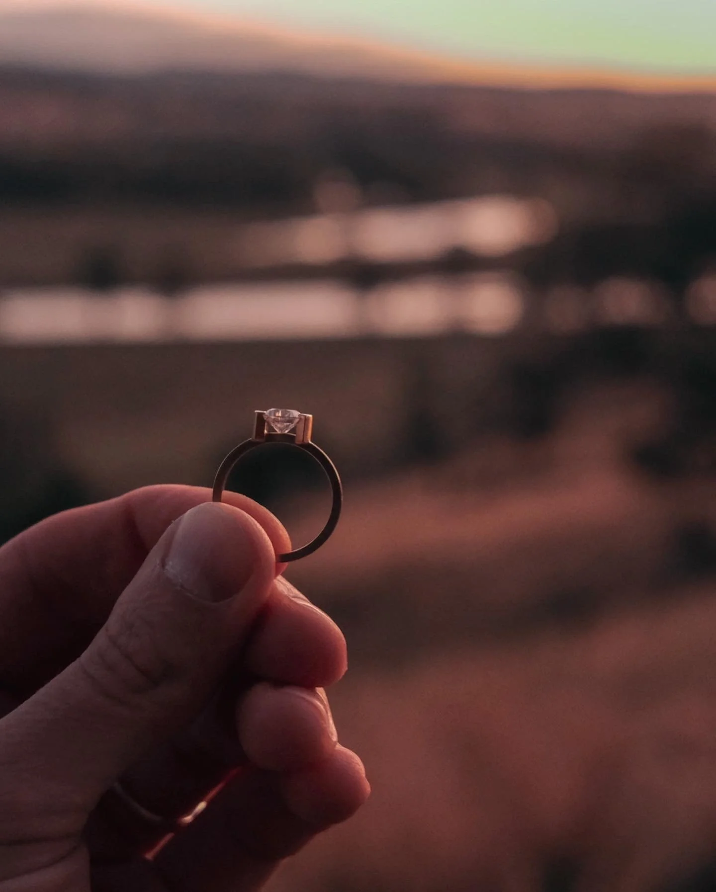 When Tom proposed to Rach, he sought Phoebe Porter’s expertise to create a custom engagement ring that reflected their shared appreciation for design and Rachel’s artistic spirit. As an industrial designer, Tom was drawn to Phoebe’s signature brutalist style and meticulous craftsmanship, making her the perfect collaborator for this meaningful project.